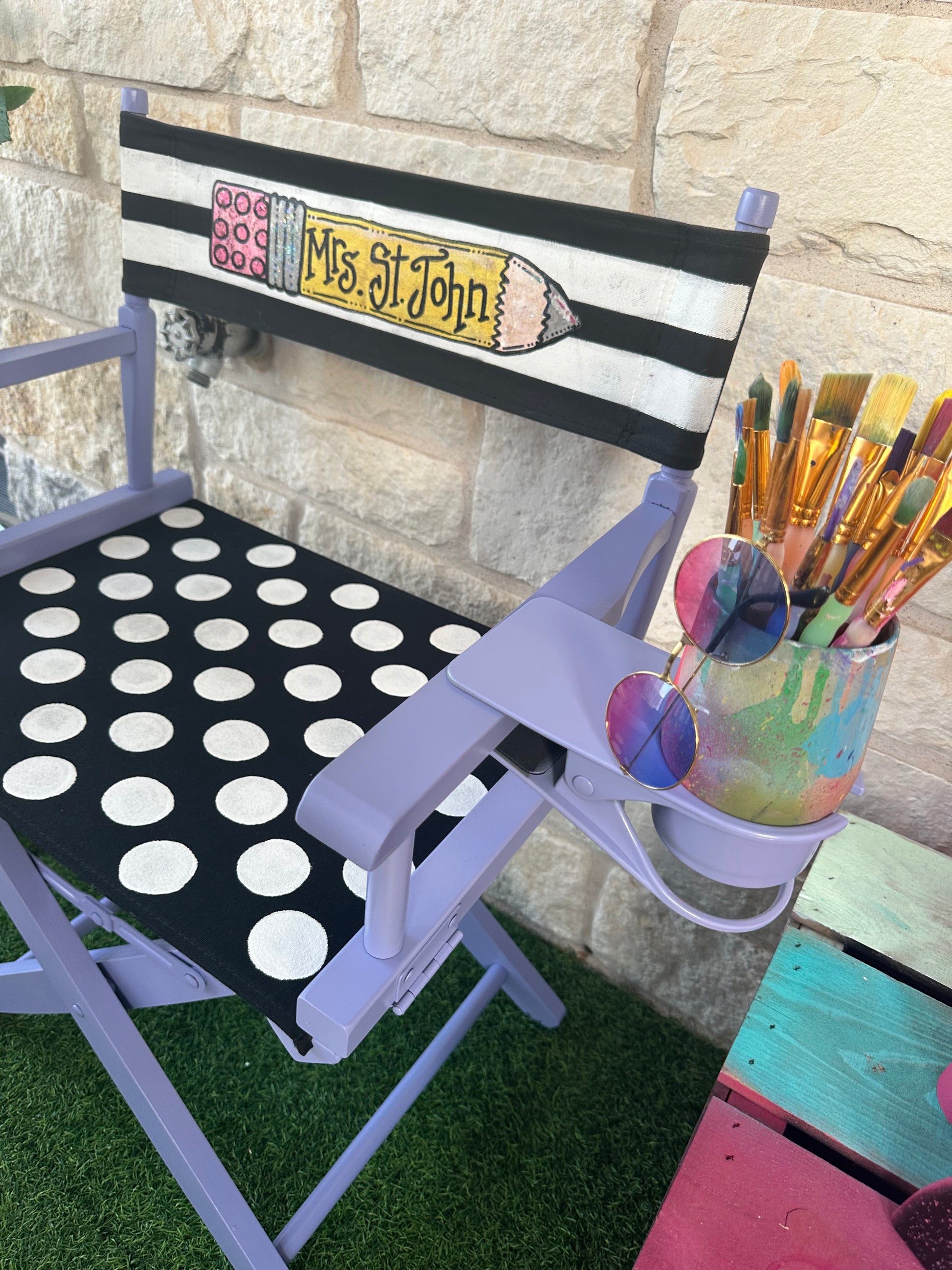 Sweet Lilac Custom Director Chair Hand painted and Personalized by Jez just for you = JEZ4U with 1 free cupholder ready to ship